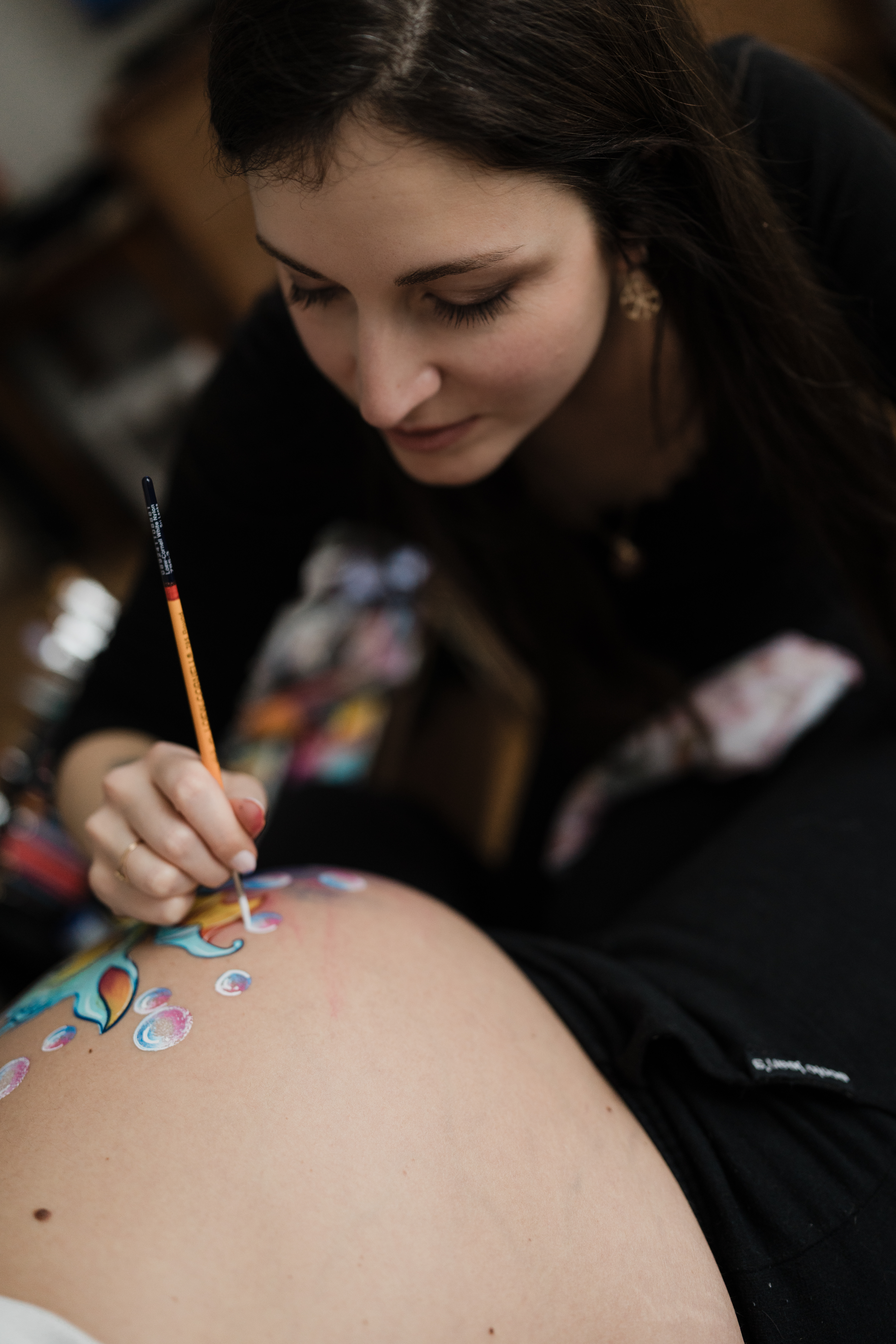 Pour ce belly painting réalisé en banlieue Parisienne, cette future maman m’a accordé une confiance totale.